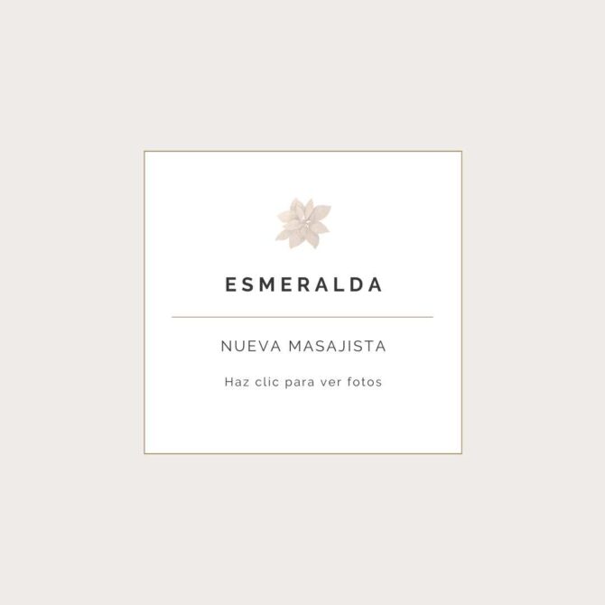 A sus 20 años, Esmeralda deslumbra con una belleza hipnótica que te atrapa. Su melena larga y ondulada enmarca un rostro de encanto natural, donde destacan sus grandes ojos marrones, brillantes y expresivos, capaces de hablar sin palabras. Sus labios, carnosos y dulces, despiertan las ganas de descubrir más… Su figura es delgada, casi teen, con una cintura marcada y un trasero redondo que invita al deleite. Natural, risueña y con una bondad que se siente en su forma de mirar, Esmeralda conquista por dentro y por fuera. Tiene un poder de escucha único y una curiosidad deliciosa: es nueva en este mundo, pero una alumna perfecta para quienes disfrutan guiando con calma y deseo a una joya en plena formación.